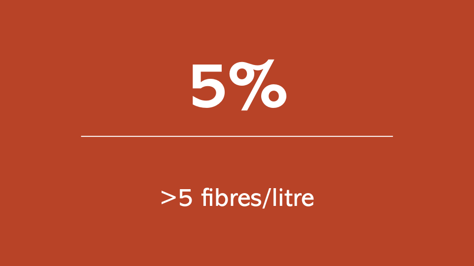• 5 % dépassent le seuil de 5 f/L (18 815 mesures)